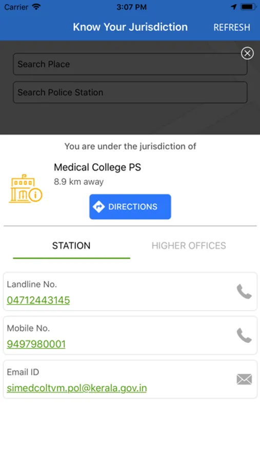 The purpose of the app is to provide information about the jurisdiction of Police Station in which you are in. Map and Contact details of the police station and different cells in the police station are available.
