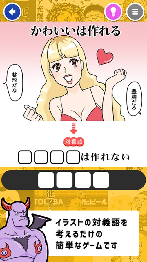 It is a game to answer words filled with antisymmetric words of the words to be completed.