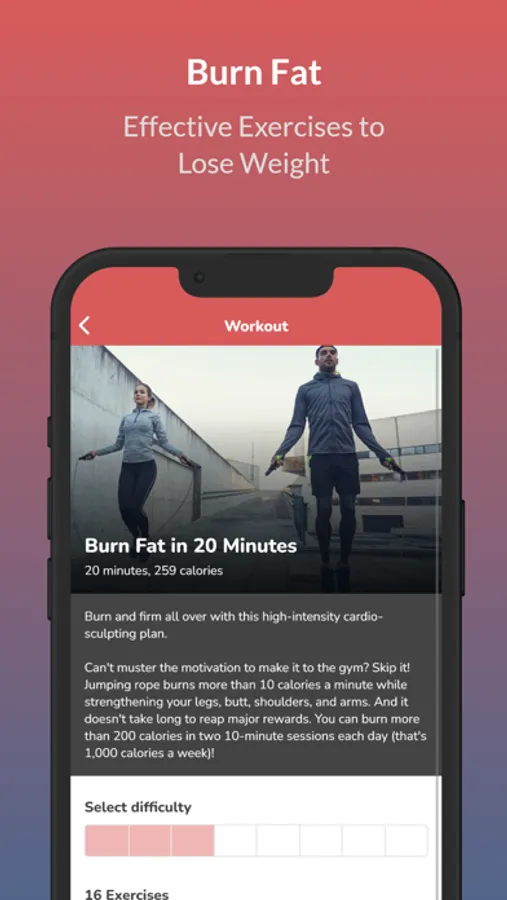 Can't muster the motivation to make it to the gym? Skip it! Jumping rope burns more than 10 calories a minute while strengthening your legs, butt, shoulders, and arms. And it doesn't take long to reap great rewards. You can burn more than 200 calories in two 10-minute sessions each day (yep... that's 1,000 calories a week)!