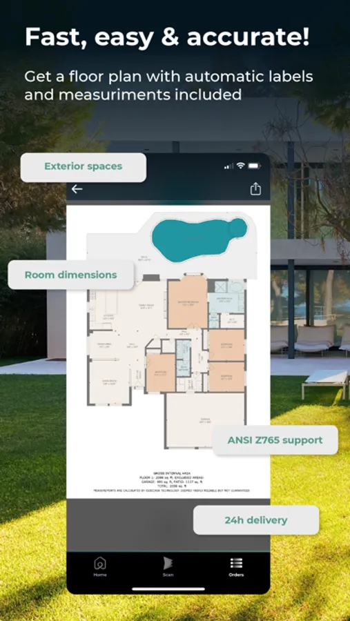 Make a scan and receive a 2D, a 3D floor plan or a video walkthrough render. Get accurate property measurements automatically for all rooms. The only 5 min floor plan tool with no DIY steps.