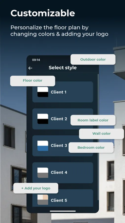 • Add your own logo, wall color, and floor color