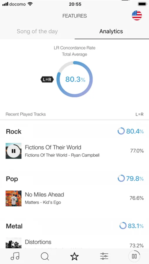 Analyze the data of songs in stereo to provide analysis on how the rate that the same sounds are played on the left and right channels (LR Concordance Rate) changes.