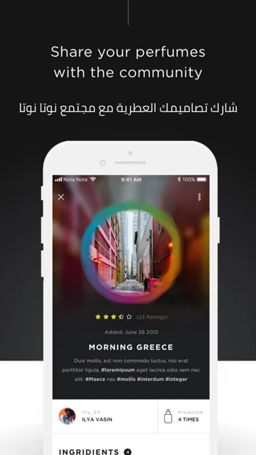 NOTA NOTA is the gate to beauty and wonders that connect creators and designers from around the world and enable them to design their perfumes and share it with the universe. Using Nota Nota app you will be able to design your perfume and publish it, discover other designers perfumes and control Nota Nota machine.