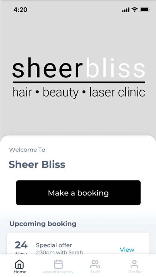 The Sheer Bliss app makes booking your appointments and managing your loyalty points even easier. You're just a few taps away from feeling good and looking great!