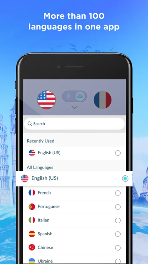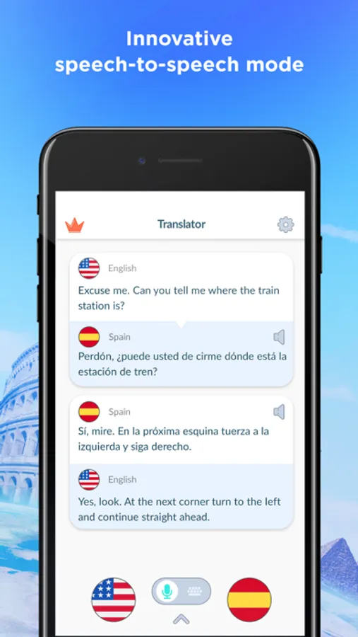• Language detection happens automatically: our voice translator recognizes chosen pair of languages right after you start the conversation