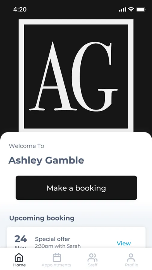 The Ashley Gamble app makes booking your appointments and managing your loyalty points even easier. You're just a few taps away from feeling good and looking great!