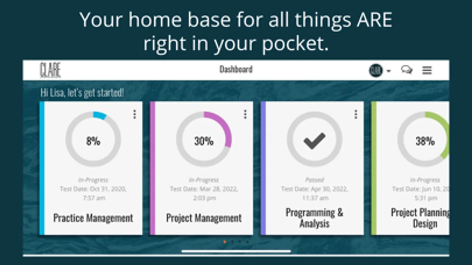 CLARE is dynamic. As we create new content, it goes right into your Study Plan. Poof, it’s just…there. It’s like a living, breathing, evolving resource of awesomeness. And, it’s all available online, anytime, from any of your devices.