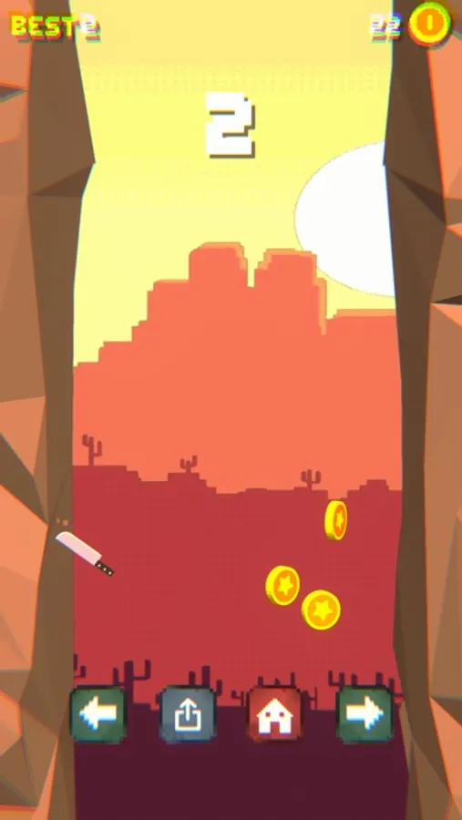 The third type is most interesting and most challenging game, you have to use same input method as in above two games but you have to stick the knife in walls and try to go upward and rise to high levels.