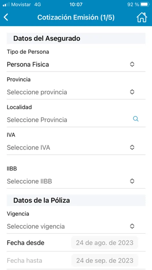 -Cotizaciones / Emisiones: Permite realizar una cotización más completa y emitir nuevas pólizas para un solo vehículo.