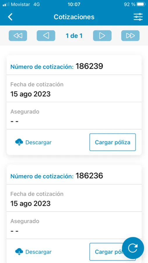 - Listar Cotizaciones: Visualiza el listado de cotizaciones y recupera los datos para realizar una cotización completa y emisión.