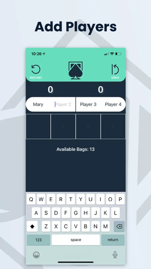 A scorekeeping app for the popular card game, Spades. Just add your player's names, enter bids and results each round, and we'll take care of the rest! Also includes light and dark modes with a variety of themes to choose from.