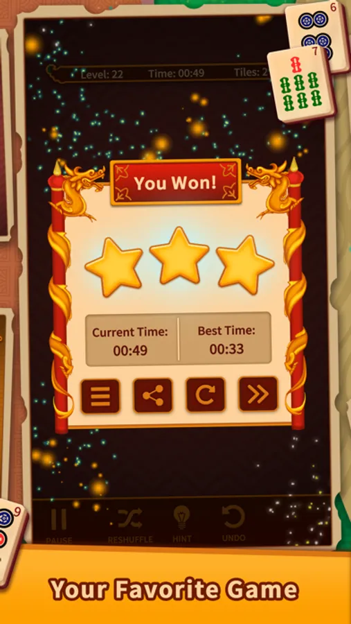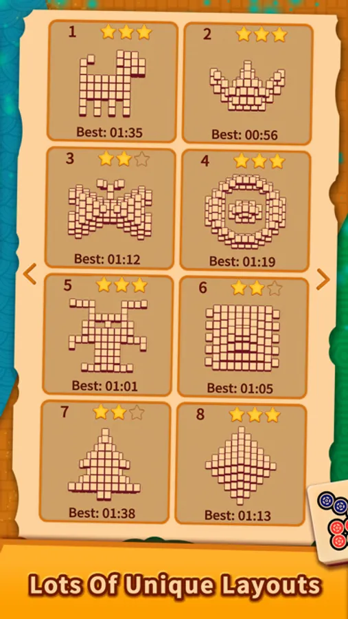 Enjoy "classic" mode with all the classic Mahjong layouts unlocked or try "arcade" mode where you unlock unique layouts as you progress through different chapters and earn stars.
