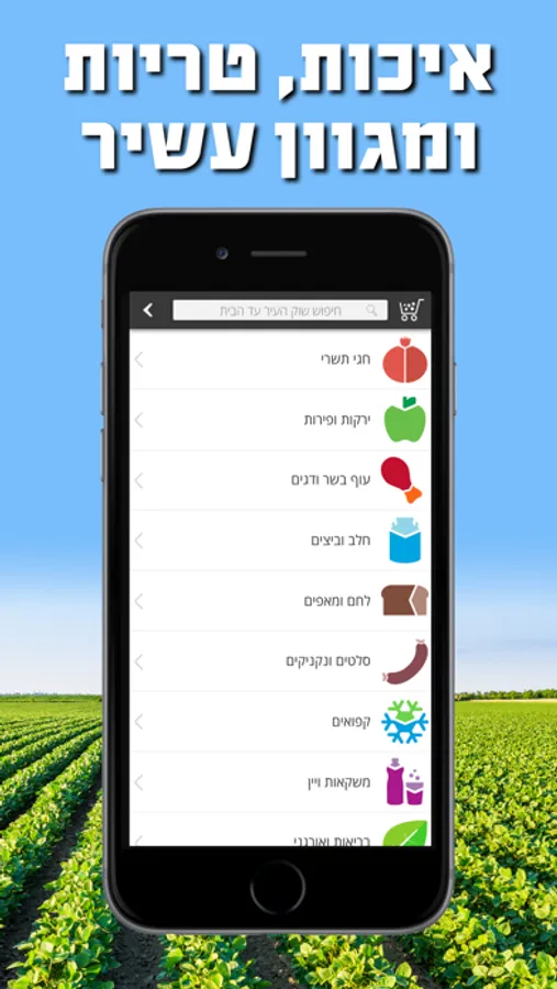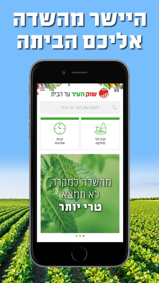 באמצעות אפליקציית הקניות של שוק העיר תוכלו להזמין בקלות את כל המוצרים הטריים האהובים עליכם ולקבל אותם עם שליח עד הבית!