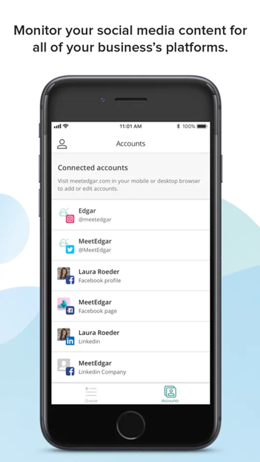 The Edgar social media web application provides a unique way of scheduling and organizing content into categories to automate publishing. With our automation features, your business's content will post even when you get to the end of your content queue. With the Edgar mobile app, it’s easier than ever for businesses to view their social media content on the go!