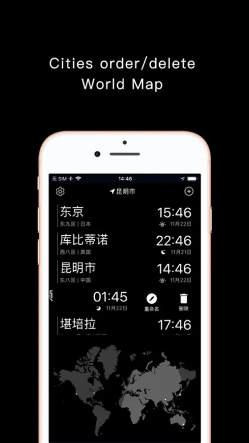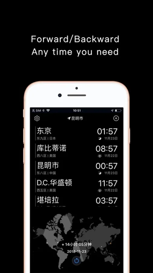 Support more than 7500 cities, add your concerned cities to home page and easily compare the difference of time in different cities. Also can forward or backward the time you need.