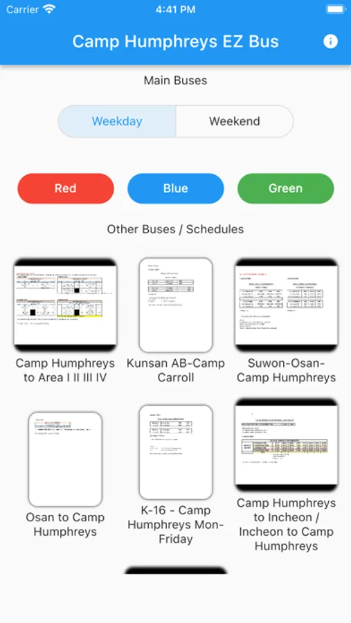 Simply select your bus color, bus stop, and the times will be displayed to you quickly and easily.