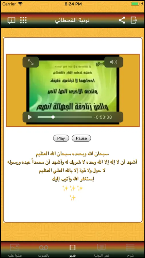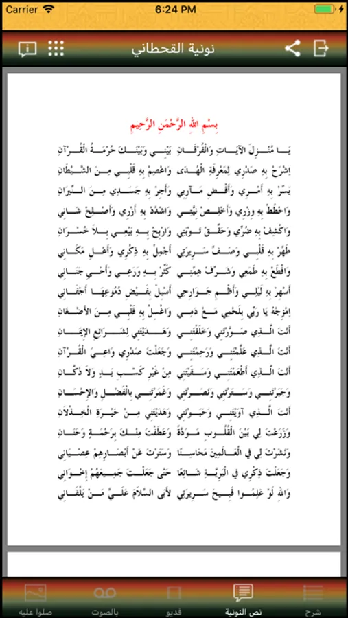 تمتع بالإستماع لنونية الإمام القحطاني رحمه الله صوت وصورة مع النص كاملا وشرح للنونية لتسهيل تعلم عقيدة أهل السنة والجماعة. البرنامج لا يحتاج الإتصال بالنت ولا يحتوي على إعلانات ويدعم التكبير.