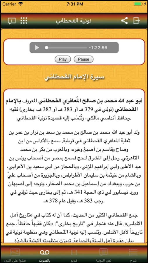 ِEnjoy listening to Noniat Alqhtani with no need for internet connection. No ads. App support zooming and contains the whole poem plus explanation.