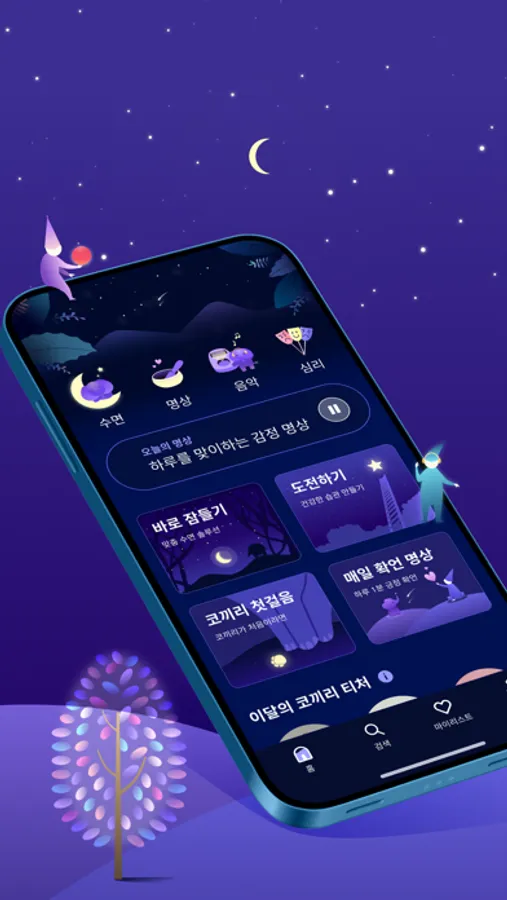 당신의 몸과 마음이 빠르게 편안해지도록 수면 콘텐츠, 전문가의 명상과 심리, ASMR, 동화 음원 등을 제공합니다.