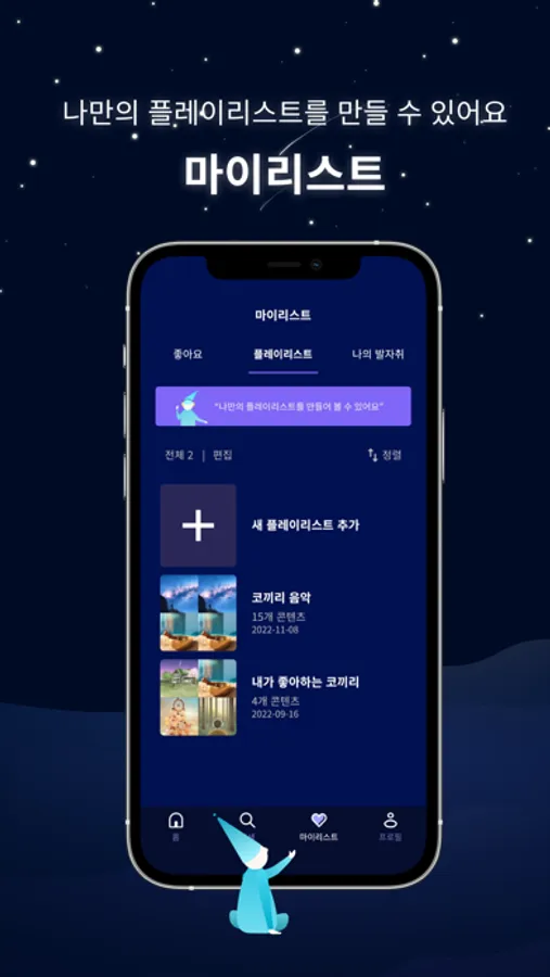 모바일로 수면-명상 콘텐츠를 듣고 마음 편안한 잠의 세계로 빠져보세요.