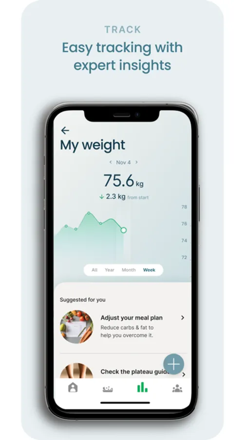 With all our support and delicious recipes, you will want to track your weight loss progress. We make it easy with a simple tracking tool where you can track your weight, waist and blood pressure manually or with Apple Health synchronization.
