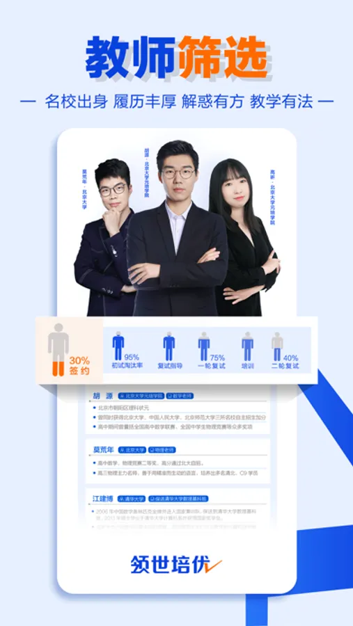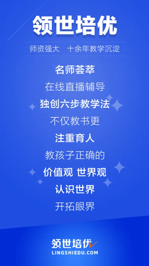领世培优素以“师资强大、课程高质”闻名于家长之间,对自身课程及服务质量的要求极高,深受家长及学生的喜爱。教师团队中不乏学生口中的男神、女神,领世不仅教书,更注重育人,非常重视传输正确的价值观和世界观,教孩子认识世界、开拓眼界,这也是领世的一大特色。
