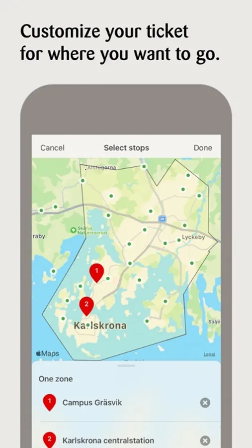 With Blekingetrafiken’s new app, you can buy tickets and search for journeys quickly and easily. The app works for journeys within Blekinge. The app includes our new tickets, and discounts for travelling within Blekinge.