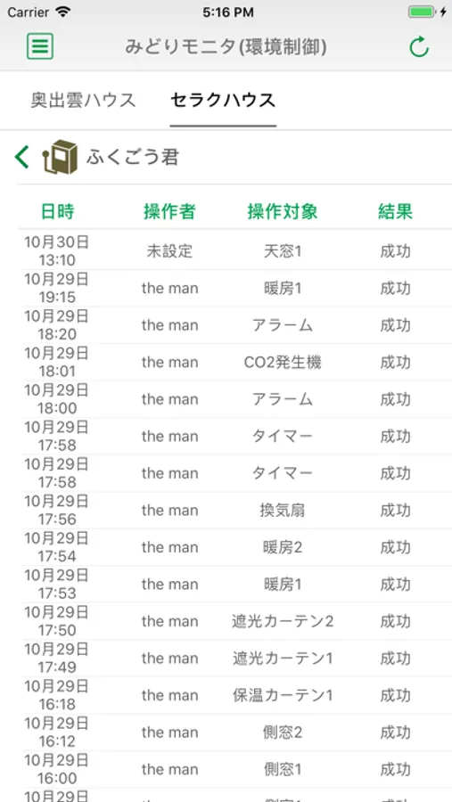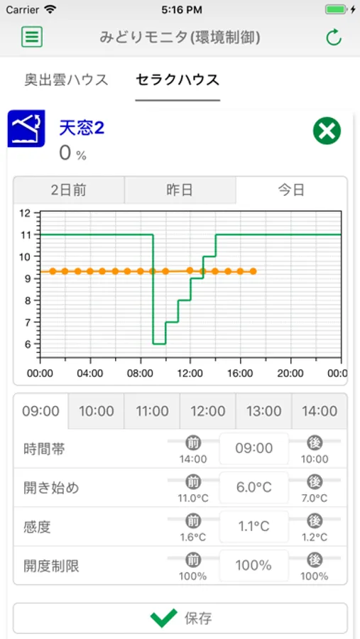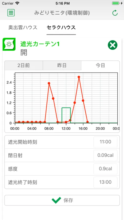 複合環境制御装置に接続された制御機器はアプリを通して時間帯などの設定変更や現在値の確認が可能となります。