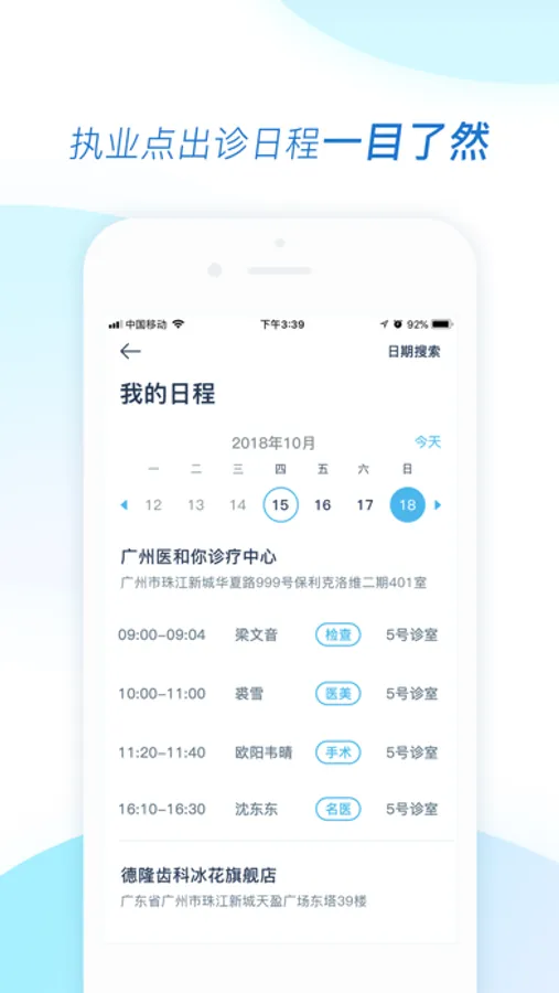 【出诊日程管理】:便捷全面的查看不同执业点的出诊安排;