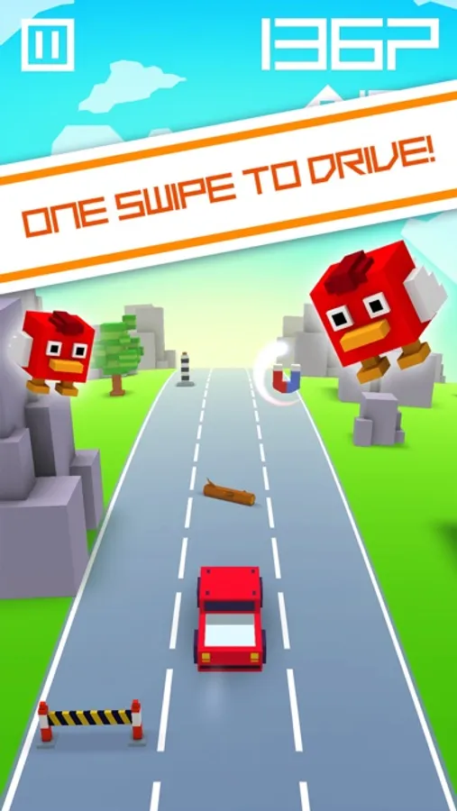 Swipe left and right to avoid cones, barriers, or crazy cows!