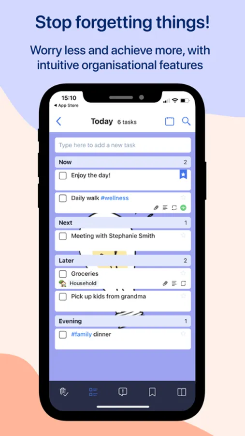 We all need to handle a lot of things, from work tasks or college essays, through to shopping needs and even which box set to watch next. After a couple of weeks of daily Wundertask use, you’ll have stopped forgetting things, and you’ll be less likely to over-commit. We can't promise you'll meet every deadline, just that you won't be surprised by them!