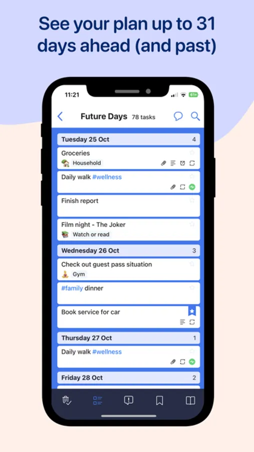 * View your ‘Next 31’ and your ‘Last 31’ days (unlimited history with Wundertask Pro)