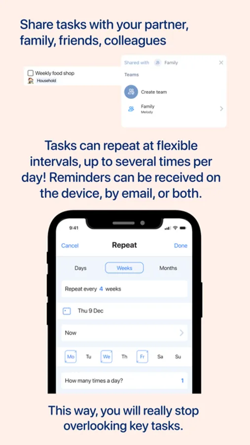 * Share and assign tasks with your partner, colleagues etc. (share more than 5 with Wundertask Pro)