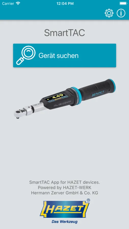 Die HAZET SmartTAC–App kann mit den HAZET–SmartTAC-System 7000sTAC Drehmoment- / Drehwinkelschlüsseln über eine Bluetooth-Schnittstelle verbunden werden und „Live Daten“ austauschen.