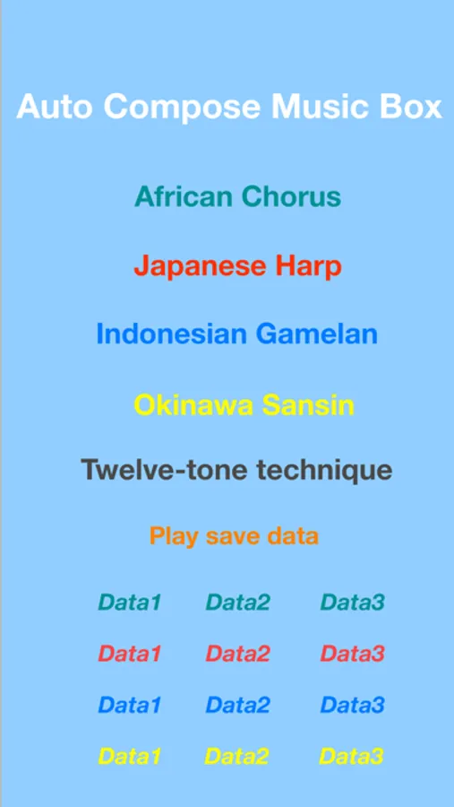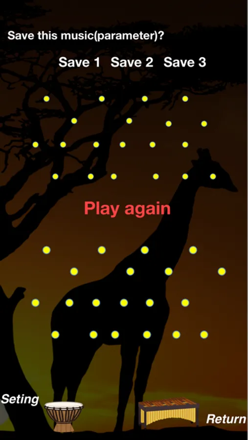At the end of the performance you can save all the parameters at that time. The position of the ball made randomly is recorded as it is. Since it is played with exactly the same parameters, almost the same music can be reproduced. However, because it is a problem of numerical precision, it will not be exactly the same performance, so do not be afraid.