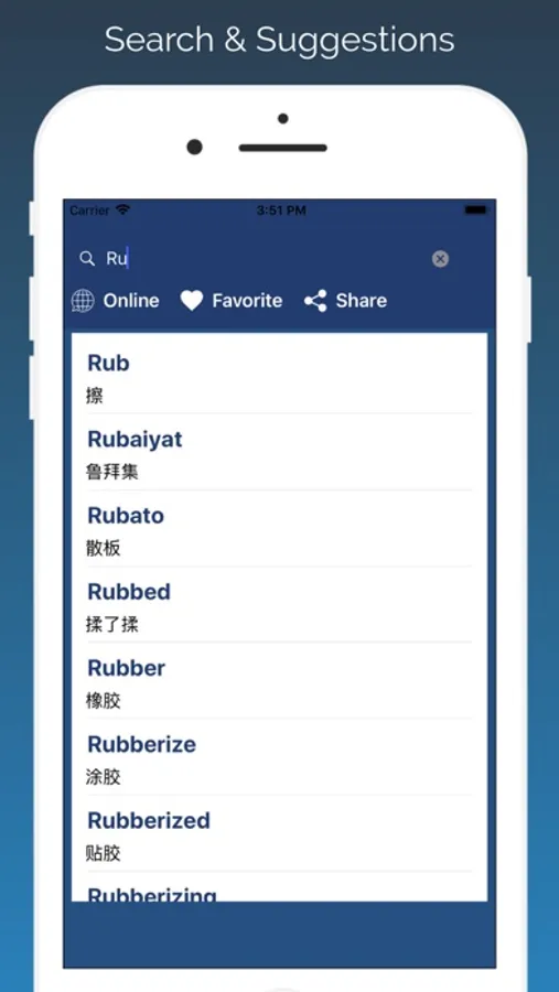 => You can search both English and Chinese words. You can search words directly from "Internet Browser" or other Applications by using Sharing option