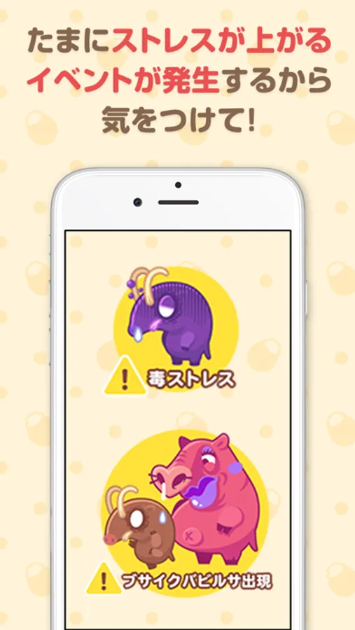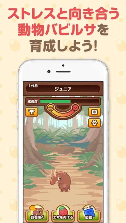 「さとれバビルサくん〜死へのストレスで僕はさとった〜」は、バビルサというキャラクターのストレスが溜まらないように、定期的にバビルサのグチを聞いてあげたり、ストレスの下がるエサをあげて育成するヘルスケア・ゲーミフィケーションアプリ。最大の特徴は、あなた自身のストレスが下がると、バビルサのストレスも下がること!!