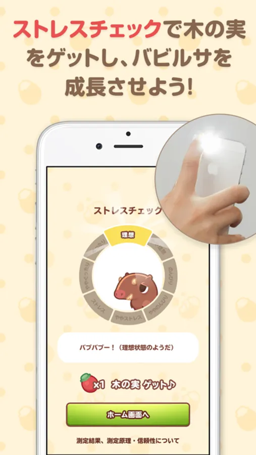 スマホカメラであなた自身のストレスを測って、バビルサがストレスで死なないように育成しよう!
