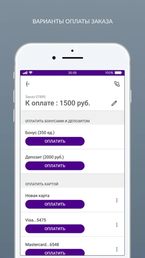 - оплатить заказы банковской картой, бонусами или депозитом;