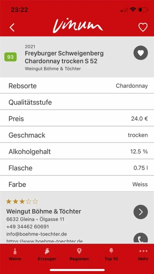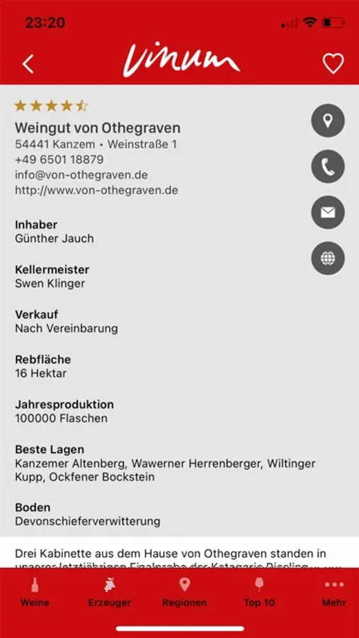 • direkte Telefon- und E-Mail-Funktion sowie Verlinkung auf die Websites der Weingüter,