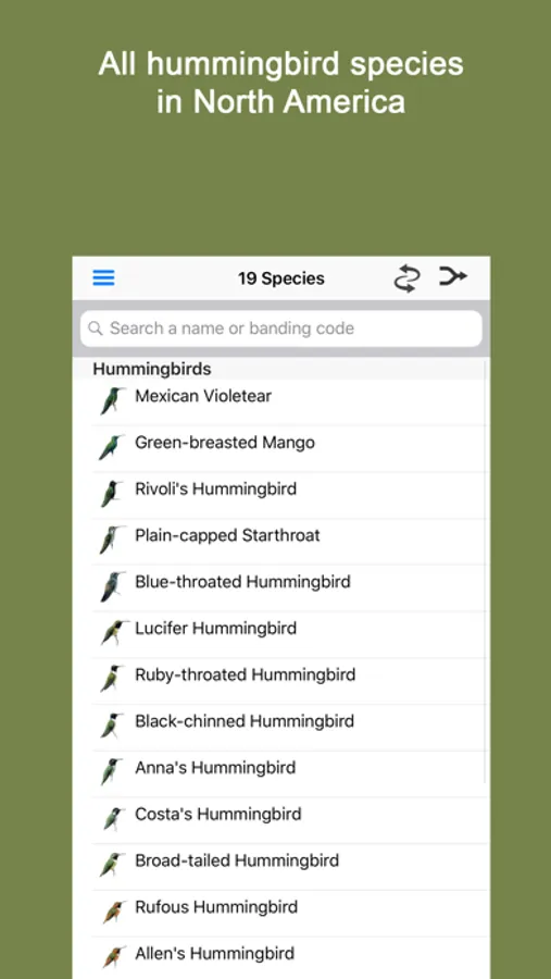 Sibley Guide to Hummingbirds is a section taken from the new Sibley Guide to Birds 2nd Edition. It is fully functional and allows you to try out the app for free.