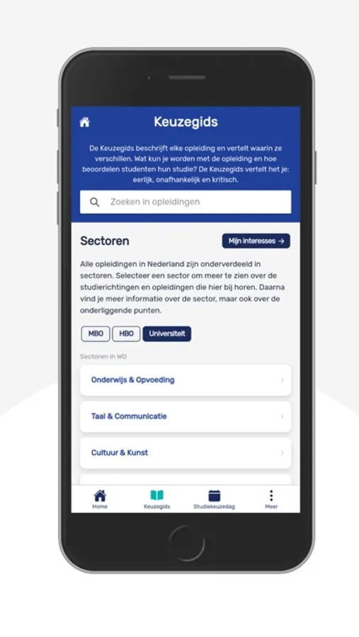 Dit alles overzichtelijk in één app. Maak een goede en weloverwogen studiekeuze met deze handige app!