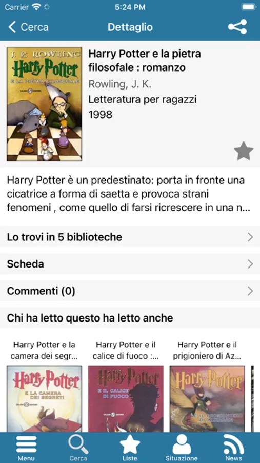 - in evidenza il materiale posseduto dalle biblioteche preferite