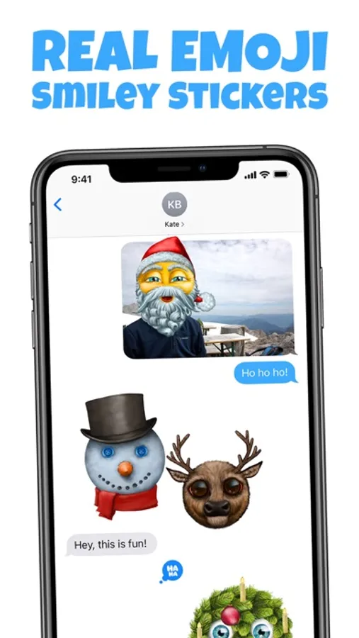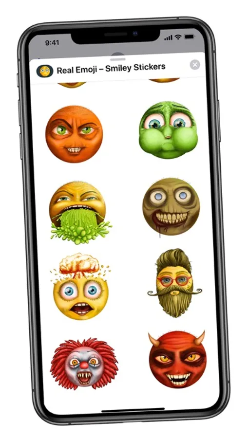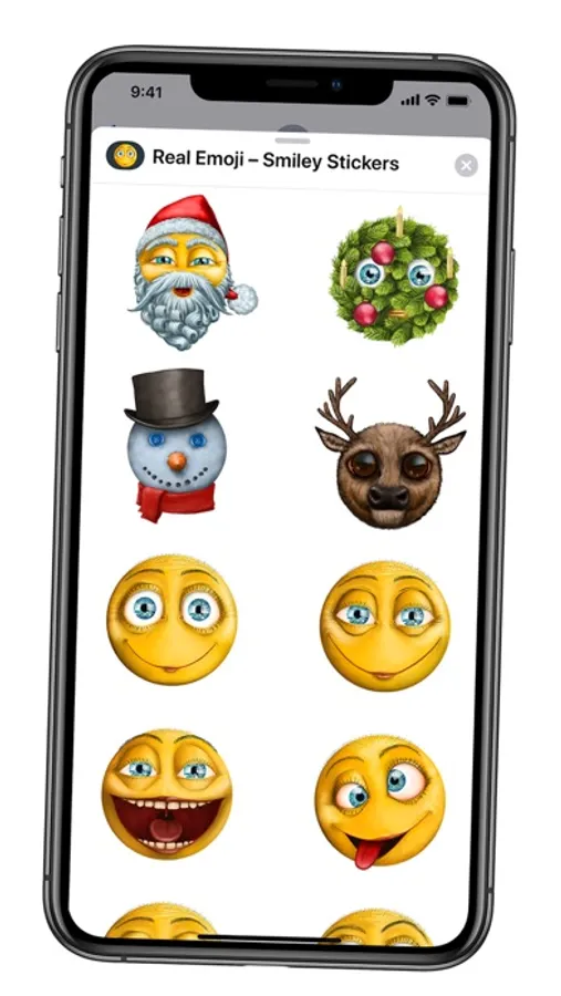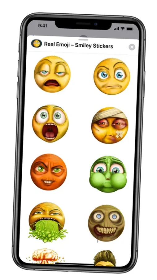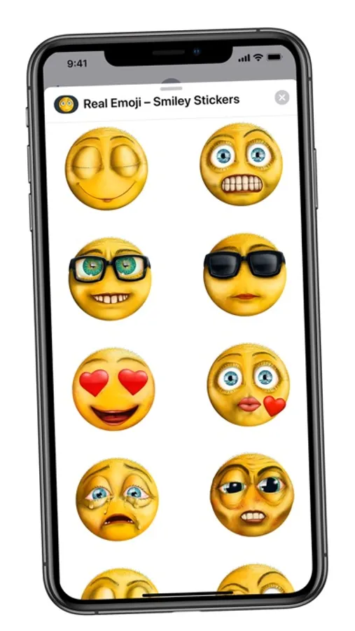 After install open iMessage, look for the Real Emoji app icon at the bottom of the screen and drag the stickers you like into your chat – or just send a sticker by tapping on it. You can also combine elements, e.g. by dragging a sticker over an image. Give it a go and have fun! :)