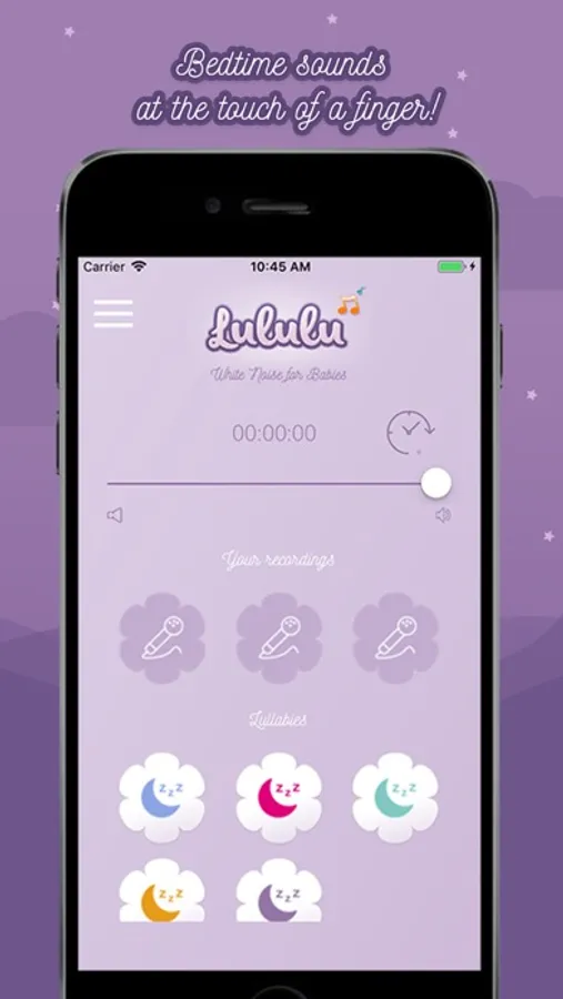 Choose from our huge selection of calming and soothing white noises, calming sounds and lullabies or record your own sound to help your baby slip peacefully into dreamland. The app includes white noises like water or wind or waves on the beach, classic lullabies and much more.