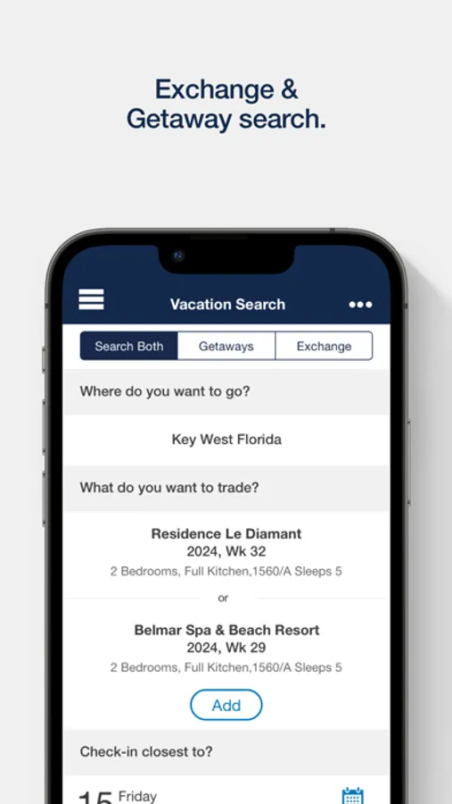 Whether finding your next vacation with Drive-to Resorts, viewing featured Flexchange destinations, or accessing the Top 10 Getaways, you can enjoy simplified trip-planning with just a tap.