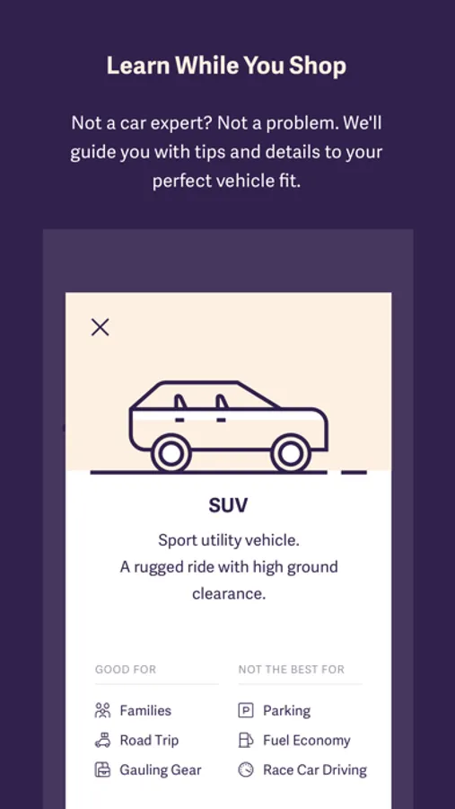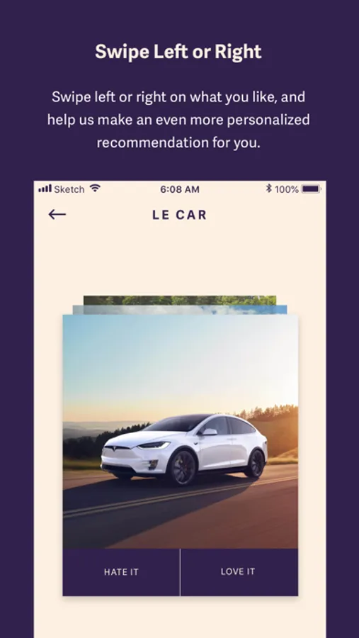 • Swipe LEFT and RIGHT. Swipe left and right on vehicle visuals of exteriors, interiors and features so that we can get even more personalized with our recommendations.