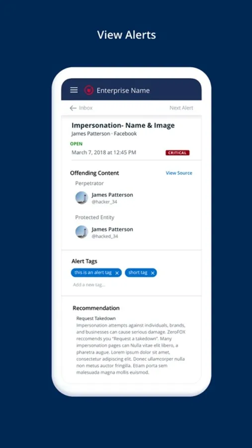ZeroFOX’s mobile app provides the powerful protection of the ZeroFOX platform at your fingertips, wherever and whenever you need it.