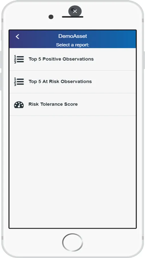 3. Simple mobile device reports including the sites risk tolerance score, top 5 positive observations and top 5 at risk observations