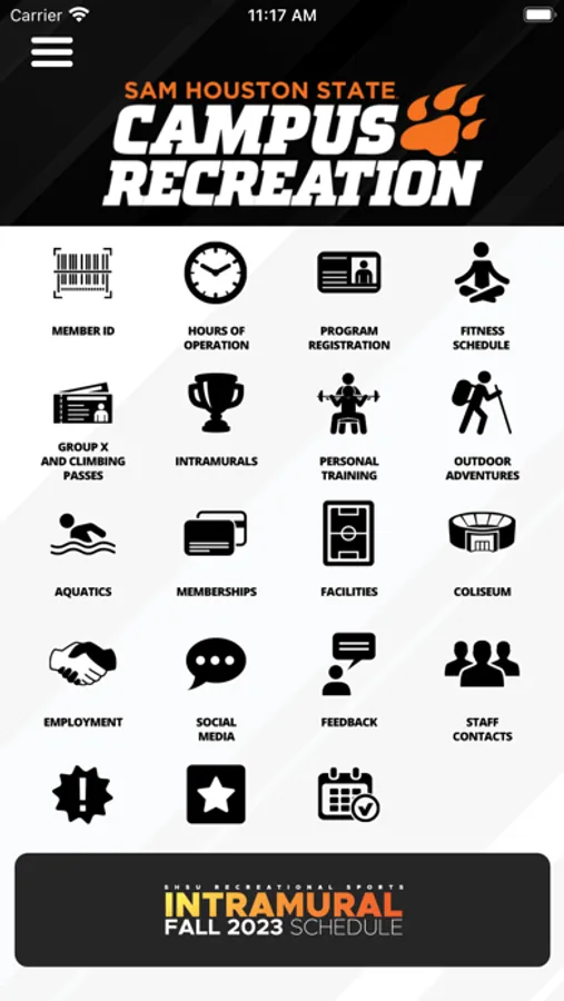 Are you a member of the SHSU Community? This app puts detailed information about Sam Houston State University Recreational Sports and the Recreational Sports Center at your fingertips. Register for GroupX classes, check out Intramural and Club Sport schedules, get updated pool hours, browse a list of upcoming events and programs, and receive notification of closures, cancellations, and more! Select your "favorites" with a click of a button, and receive reminders directly on your phone.